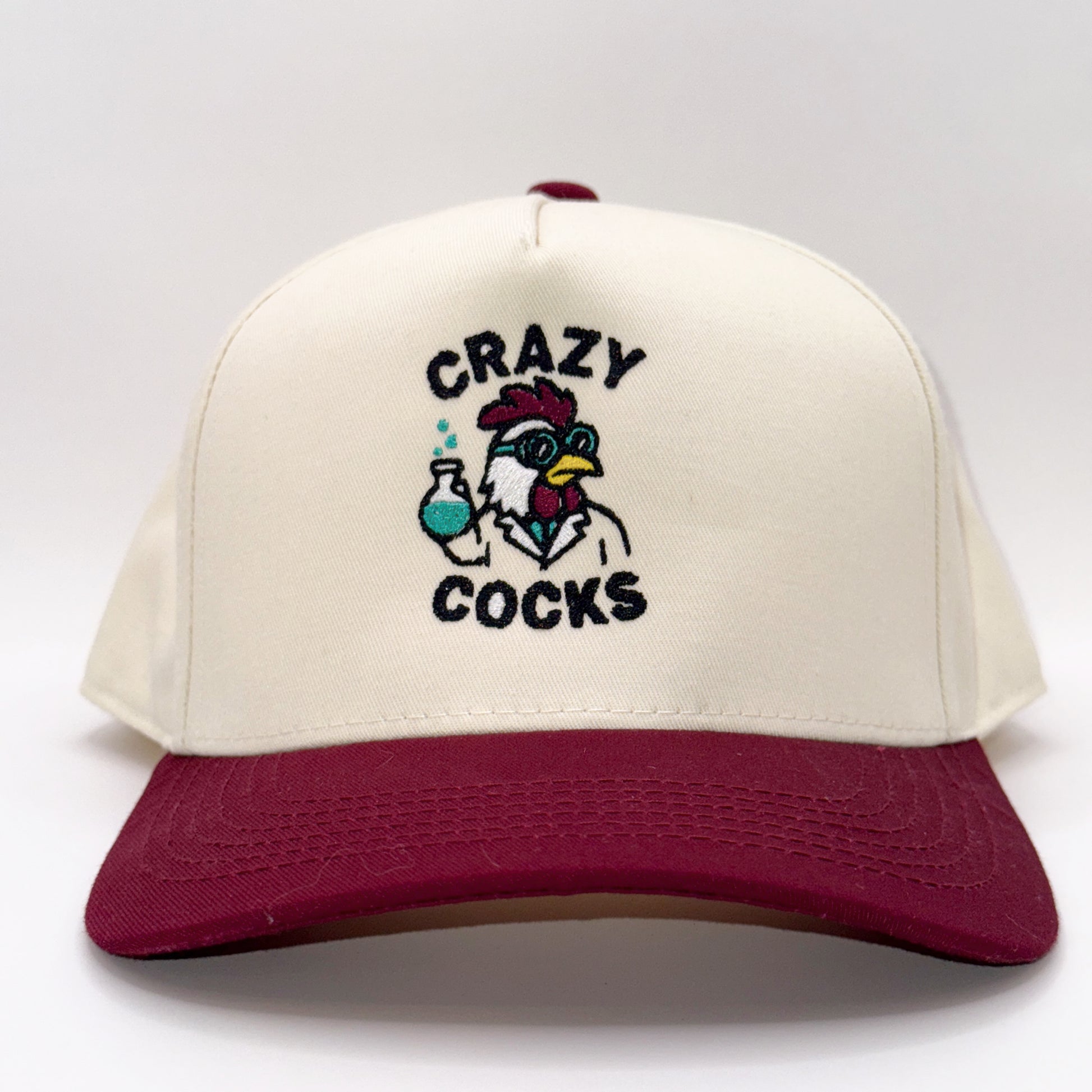 Show off your unique style with the Crazy Cocks snapback trucker hat, featuring a bold rooster designed as a mad scientist. This cap combines eye-catching artwork with a comfortable fit, making it perfect for casual wear or standout street fashion. The adjustable snapback ensures a secure fit and is Ideal for those who appreciate quirky, expert-level design in their accessories.