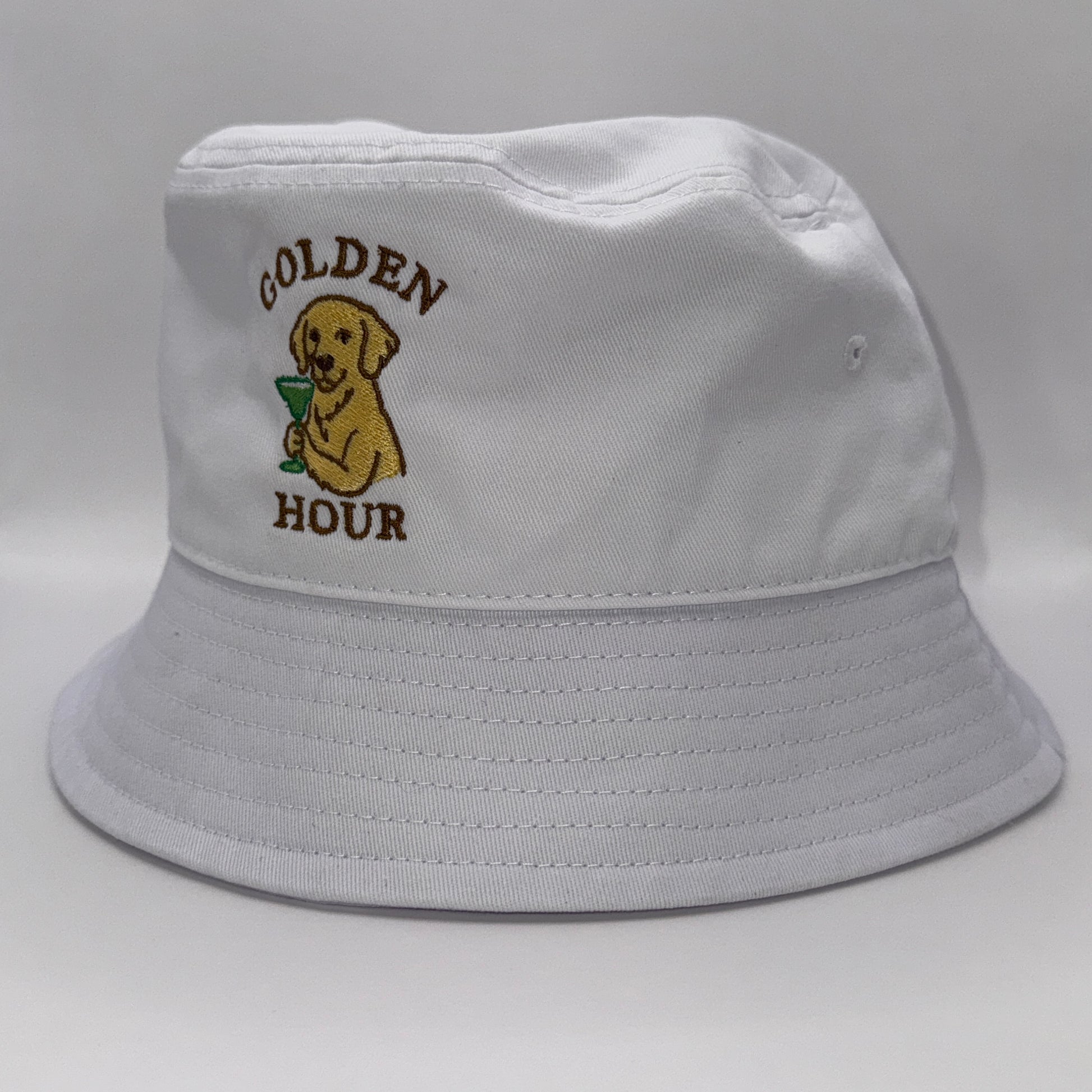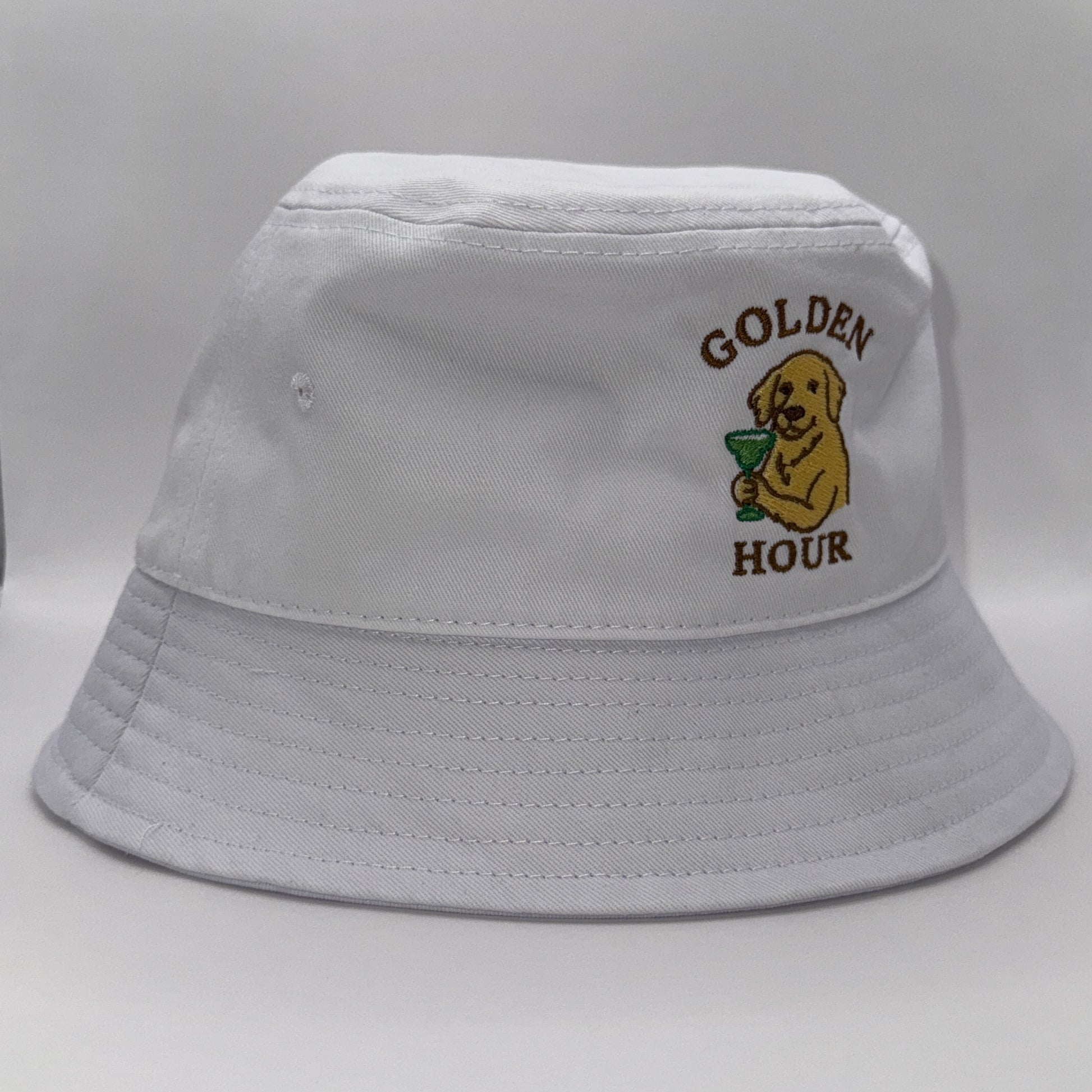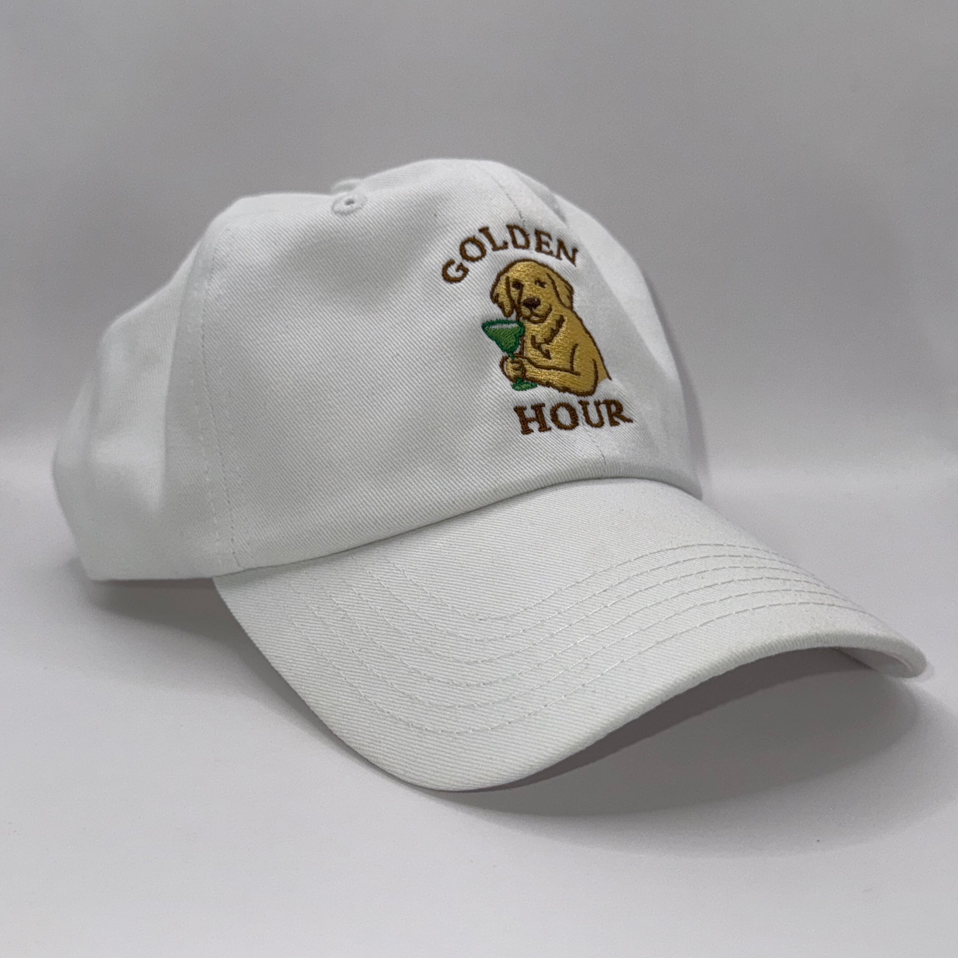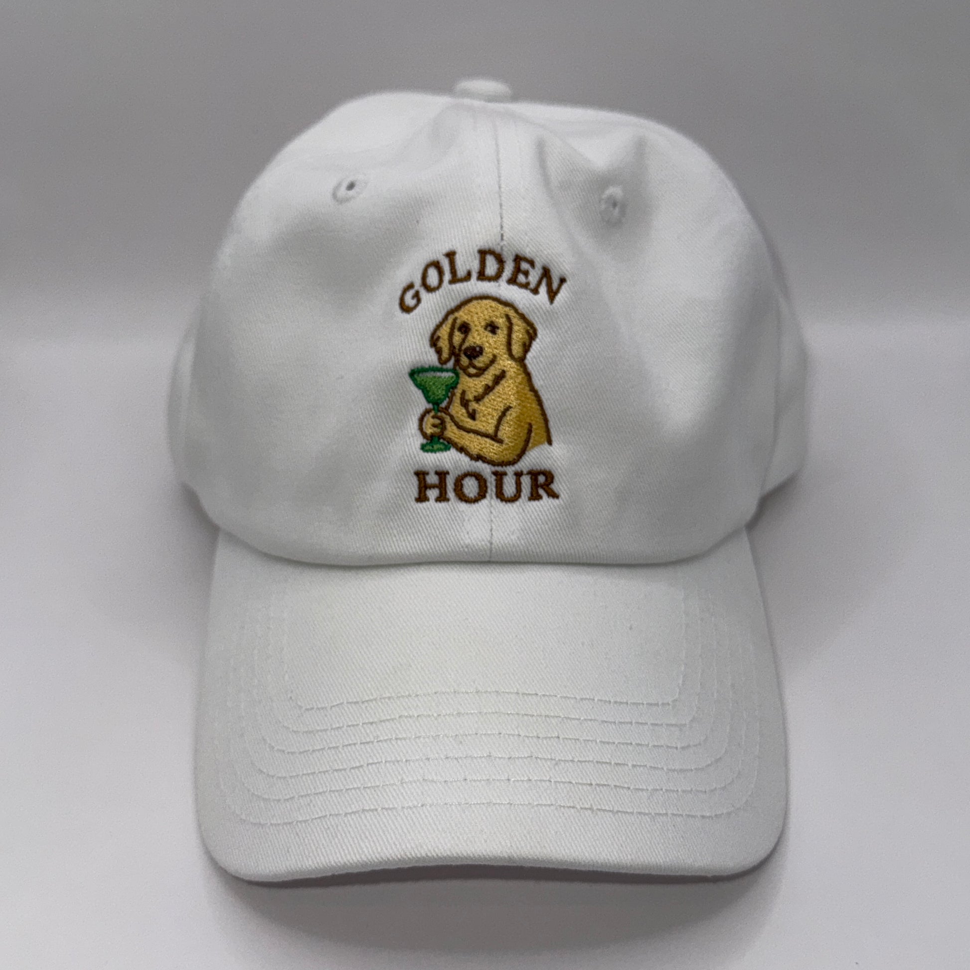 This clean white hat features a golden retriever enjoying a cocktail, embroidered front and center. A perfect mix of playful and stylish, whether you’re out with friends, lounging poolside, or just catching that perfect sunset.