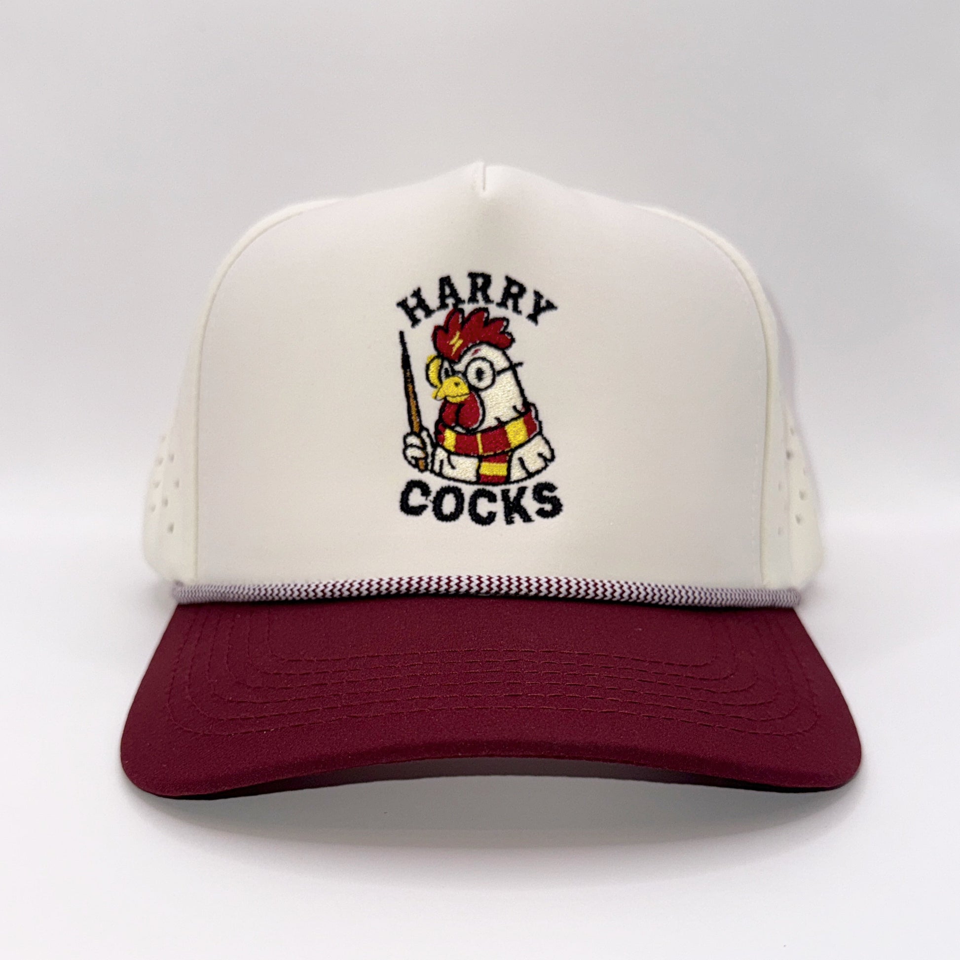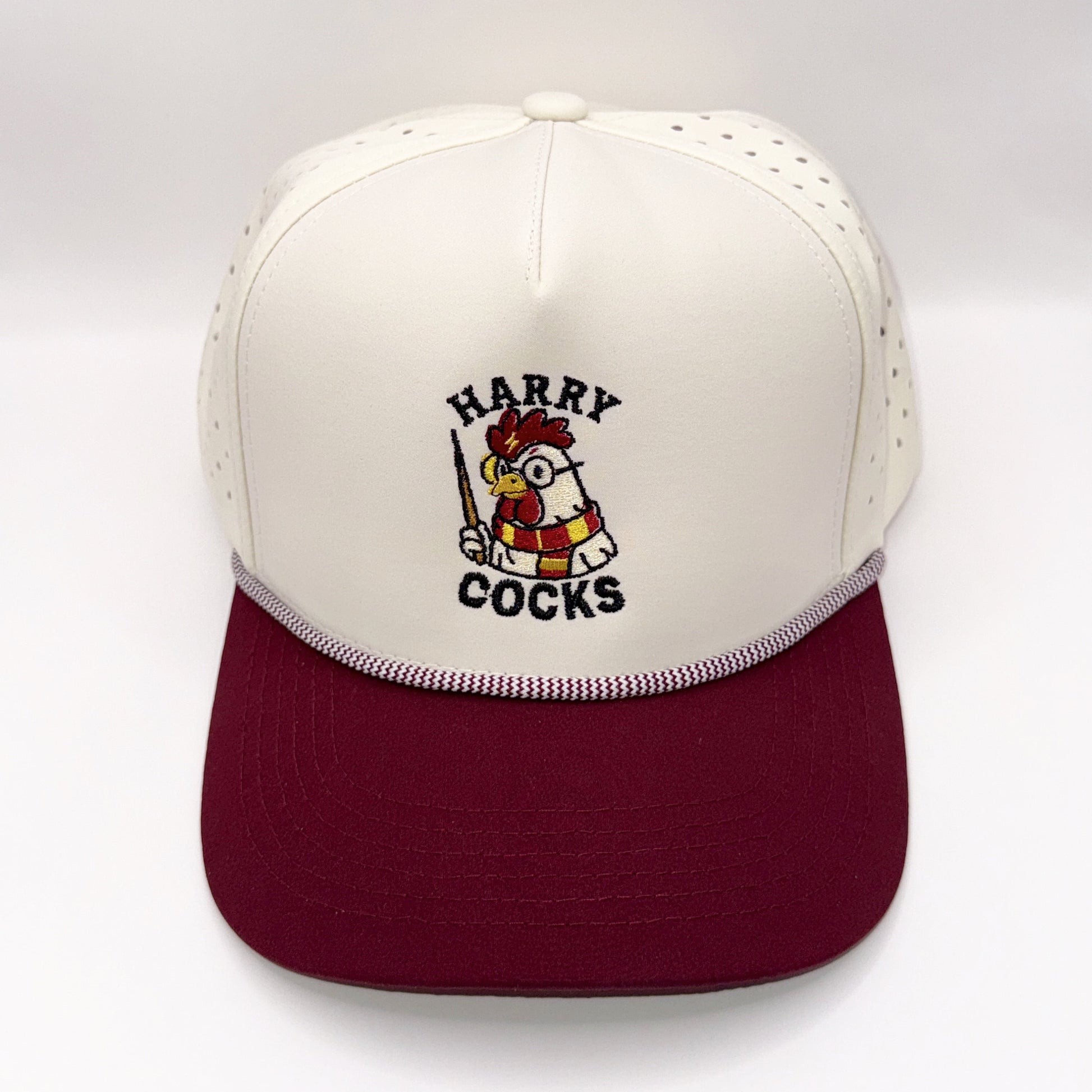 This Harry Cocks Tan & Maroon Trucker Rope Cap combines classic trucker style with a playful twist. Featuring a detailed design of a rooster inspired by Harry Potter, complete with a lightning bolt on its forehead and a wand, this snapback offers both unique flair and comfortable fit. The one-size-fits-most construction ensures versatility, while the tan and maroon color scheme adds a vintage touch. Ideal for fans seeking a distinctive accessory that blends pop culture with casual headwear expertise.
