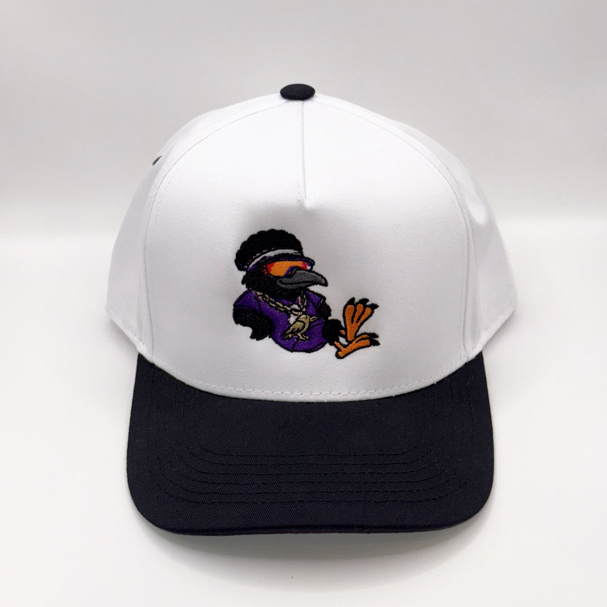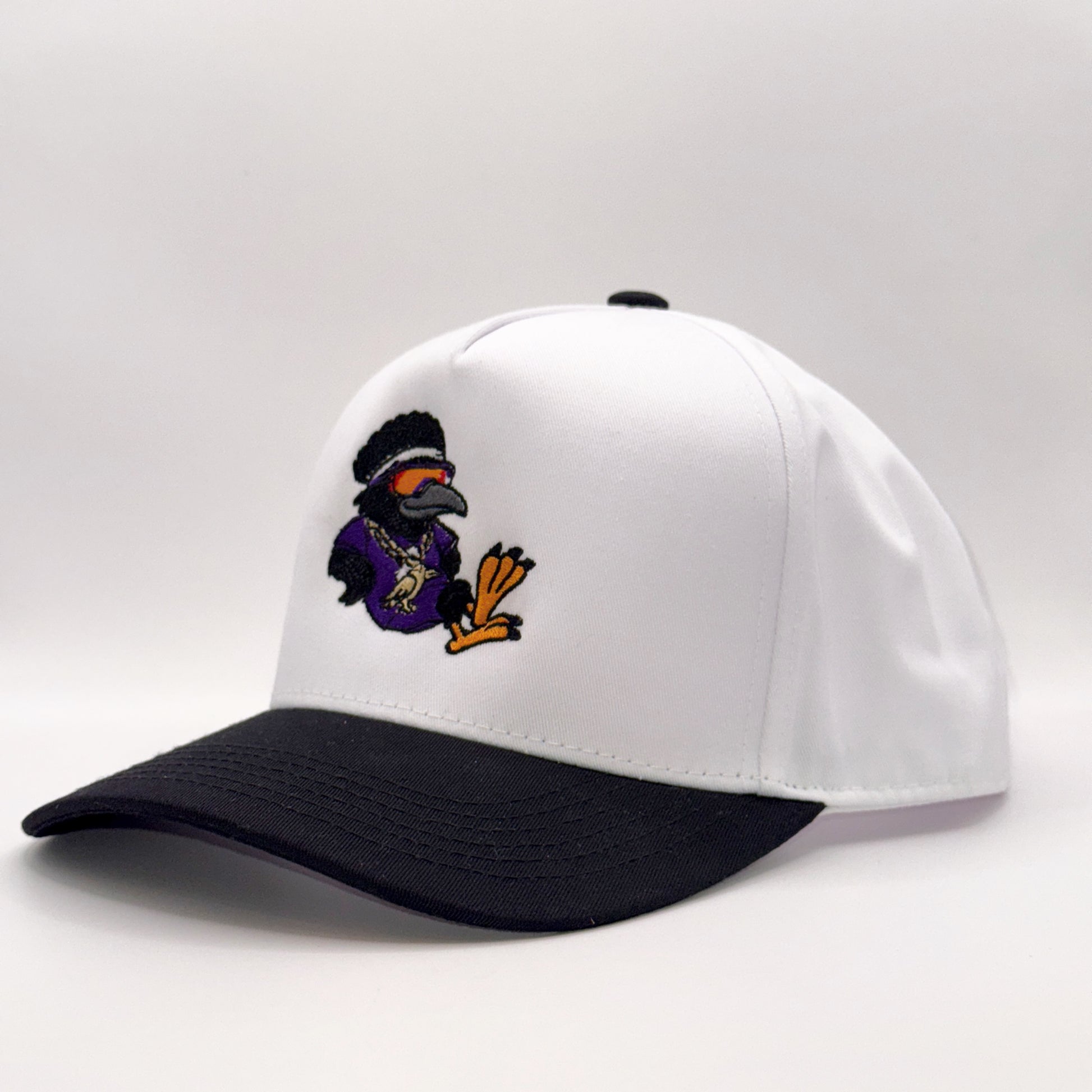 The Lounging Raven White & Black Baseball Cap combines style and comfort with its adjustable snapback design, fitting most head sizes. Featuring a relaxed raven wearing sunglasses and reclining, this cap offers a subtle nod to the Baltimore Ravens. Its crisp white crown contrasts with a sleek black brim, making it a versatile accessory for casual wear or game day. Durable materials ensure lasting wear, while the unique design adds a touch of personality to your outfit.