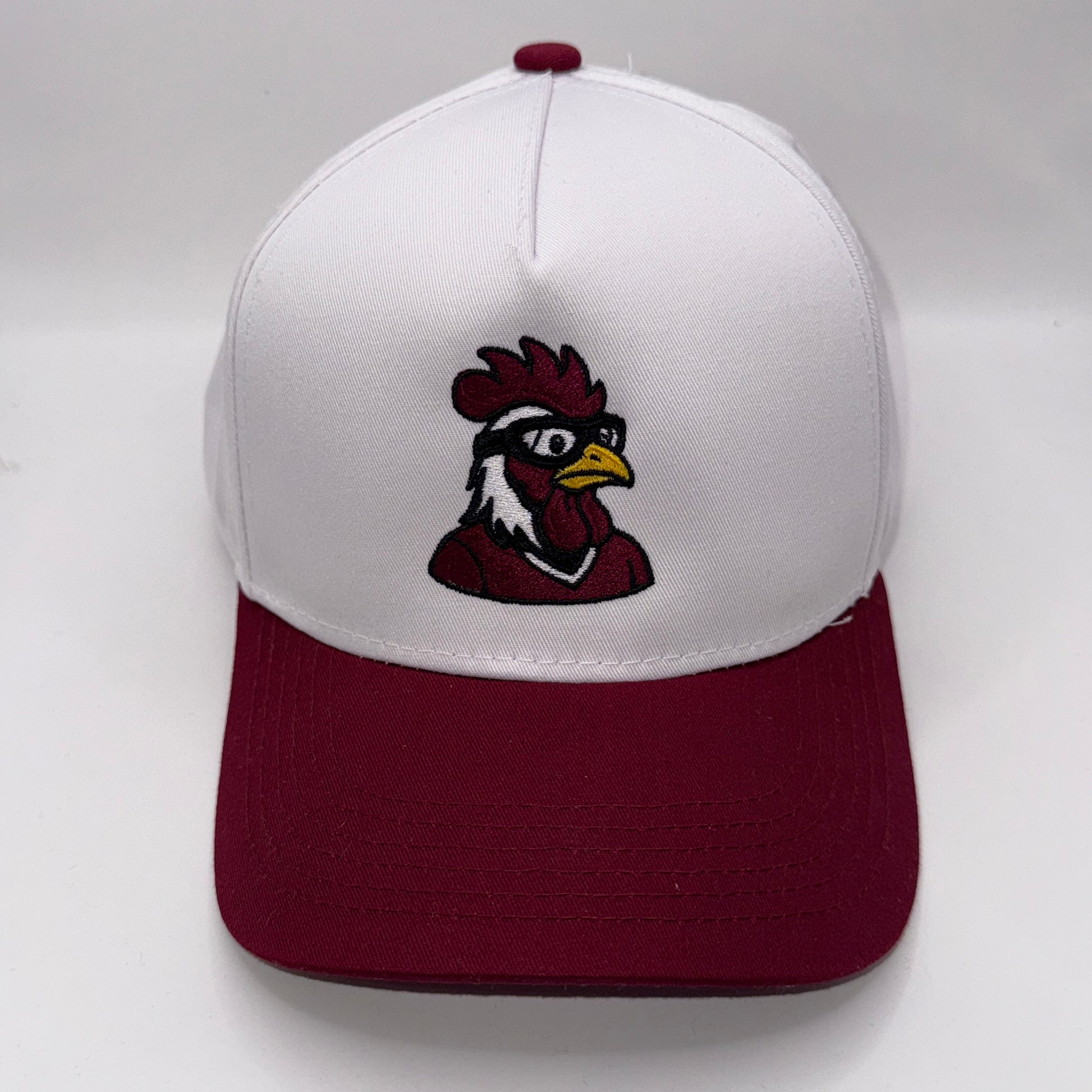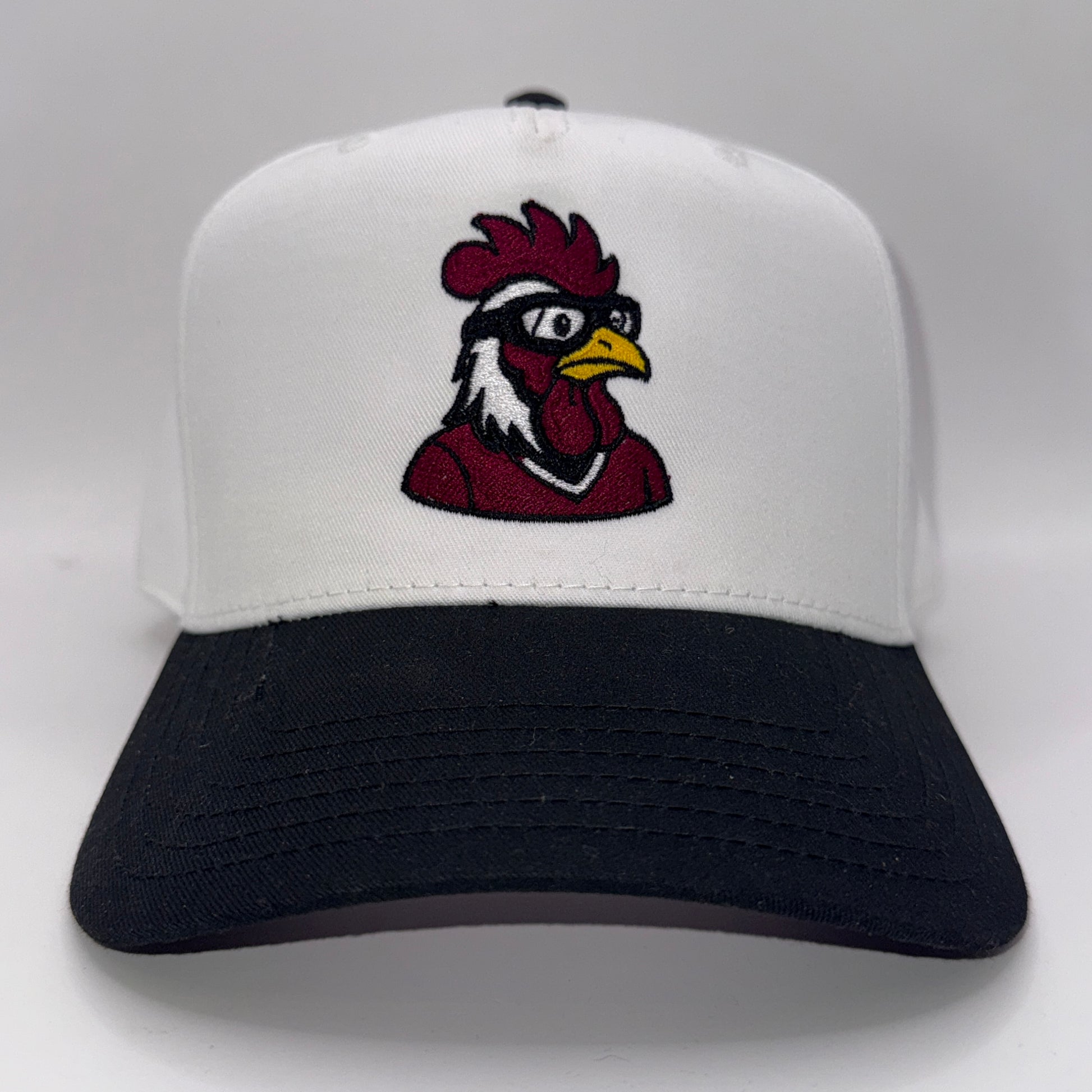 An ode to South Carolina’s own – the quarterback known for rocking the rec specs with pride. This hat features a bold embroidered rooster wearing specs, combining Carolina grit with a touch of swagger.